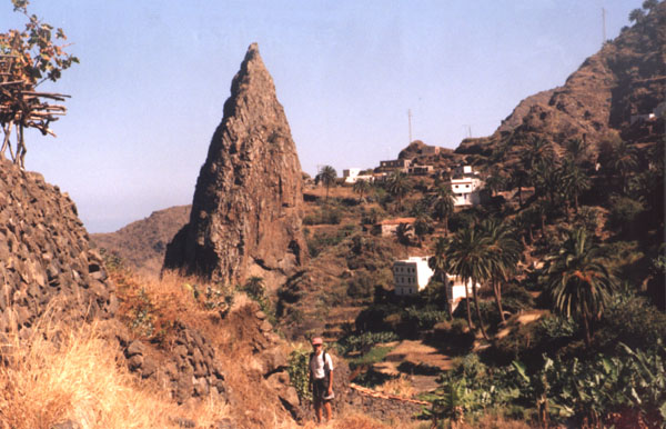 After a furious last-minute round of negotiations with Pirahna Brothers Press, the threatened launch of the tactical thermonuclear device was called off and the missile rolled back into their garage. Their parting observation was, "we wouldn't throw away a good piece of equipment on this piece of #@&*!".We believe that was intended as an insult, but it appears that we once again have the freedom to write whatever pops into our waterlogged brains.Our apologies if you were among those many readers hoping for a direct hit. The Canaries are among the islands now referred to as Macaronesia, very loosely translated as The Fortunate Isles. This group also includes the Azores, Madeira, and the Cape Verdes. While there is controversy about the exact sequence of their formation, there appears to be consensus that all these islands began with great volcanic events, in some cases combined with either uplifting or separating tectonic plates. The high islands, like Flores, Madeira Grande, and Gomera have been able to capture moisture from the clouds which form high on their upwind slopes, resulting in deep valleys where streams occasionally run. (Think Grand Canyon). The lower islands, like Porto Santo and Lanzarote, look more like the Sahara just over the horizon. The high, "wet" islands are suitable for farming, with some difficulty: terraces have to be made on the very steep hillsides by building stone walls and backfilling with dirt, and water has to be brought to the fields somehow. The levadas of Madeira are the highest evolution of this process. In Gomera, the more popular strategy is to impound water in reservoirs created by building dams in a stream bed to catch all of the occasional rainfall. The fields are clustered in valleys below each reservoir. During the 1930's and 40's, there was a sudden drop in the population of Gomera, from 30,000 to 20,000: the old-timers we talked to said it was partly due to men going off to fight Franco, but more because the climate became gradually drier, forcing many farmsteads to be abandoned.