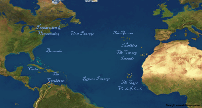 ATLANTIC ISLAND VOYAGEFrom August 18th, 1998 through May 18th, 1999 Tammy Norie circumnavigated the Atlantic with an intrepid crew of three: Mike Rowland, his daughter Shifra, and his nephew Joel. This trip was different from Mike and Joel's earlier trip to Ireland and Spain for many reasons, but one of the most significant to the folks back home was that for this trip we had e-mail. As