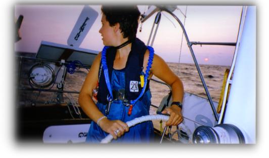 07 minutes north latitude We are now off the continental shelf, depth of water about 8000 feet. We spoke with a fishing vessel from Nova Scotia this morning, the Derrick and Stephane, who offered us a "little piece" of freshly caught swordfish. We offered some beer in return, and got about 30 pounds of fish, most of which we've crammed into the icebox. We also baked some up on the spot, and it was stupendous. So it's swordfish for breakfast lunch and dinner for the next 2 weeks, or however long we can keep it. We've cranked the little reefer unit as low as the thermostat will go in hopes of stretching it out. By now we're pretty well adapted to the schedule, which is 4 hours on watch, and 8 hours off, with Joel and I taking turns backing Shifra up until she feels OK about standing watch alone at night. She does 8-12, Mike does 12-4, and Joel takes 4-8, the graveyard watch. He likes to watch the sun come up. No one has been seasick yet, and we are pretty well done being cautious about spending too much time below decks. Weather has been very cooperative, now sunny with a gentle 12-knot breeze directly behind us. We could use more of it, having motored about 10 of the last 48 hours. But no one is whistling yet. Saw a large sunfish lolling on the surface yesterday, about 6 feet in diameter. Strange creature. The usual small whales and occasional dolphins, but not as many as we expected on the banks. Thanks for the e-mail messages. We do mail call around noon each day and greatly enjoy hearing from home. Keep those beeps and squawks coming! MR